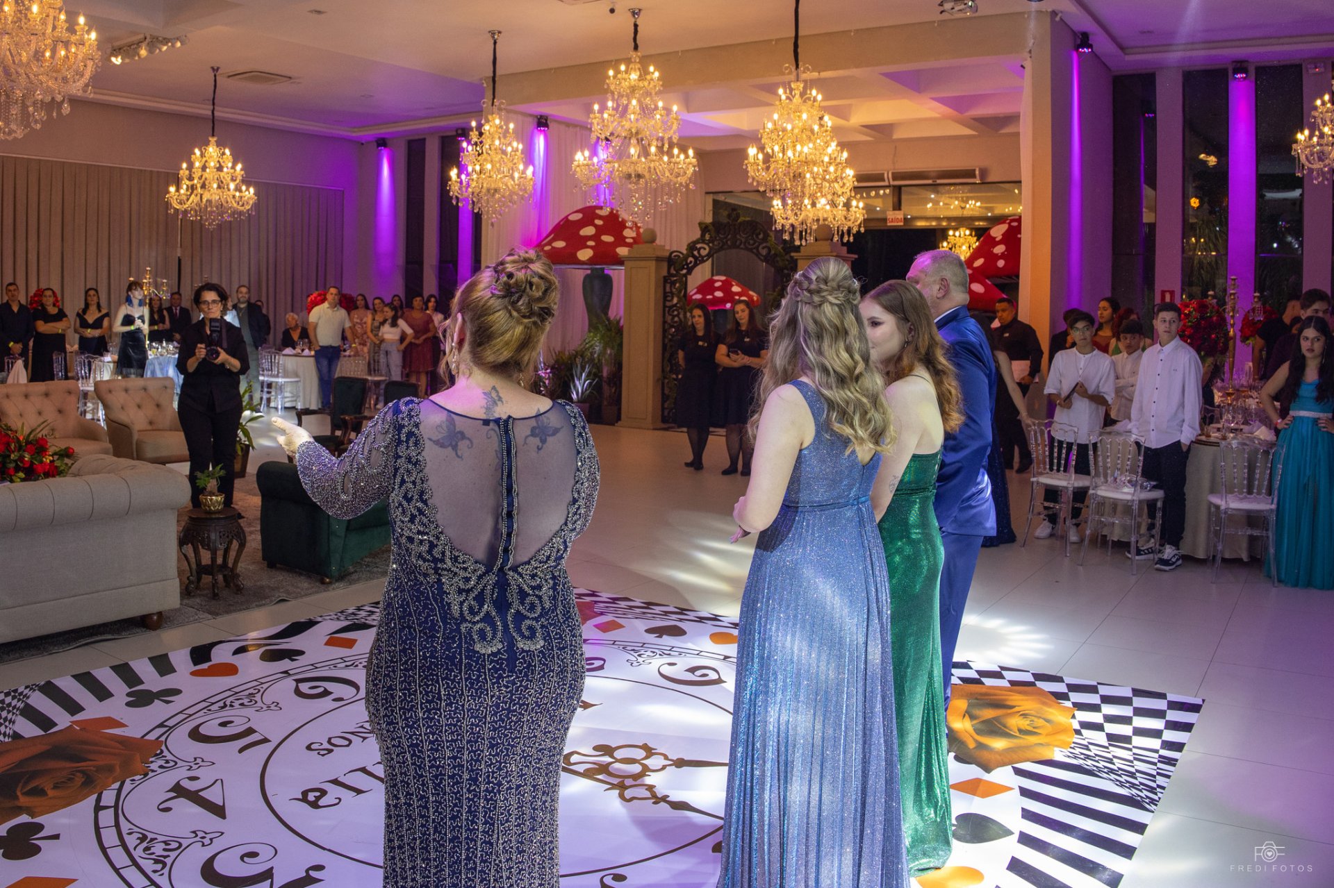 Espaços para valsa, entrada e rituais da festa.